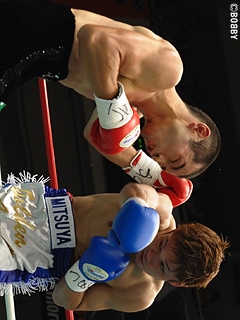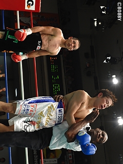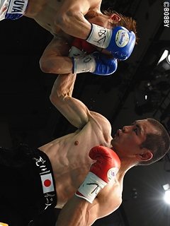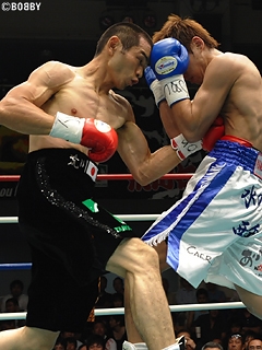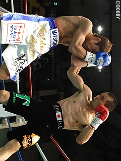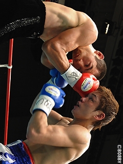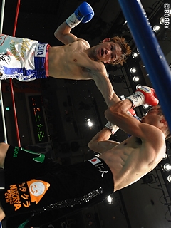 試合:ゴングと同時に大村が左フック・右ストレートで襲い掛かるも荒川は冷静にディフェンス。2R、詰める挑戦者に王者が右フックでダウンを先制。ここは直ぐに立ち上がる大村だが、再開後、もつれる両者にブレイクが掛かる。ここで大村は荒川に攻撃を加えてしまい痛恨の減点1。2R終了の時点で大村は3点のビハインドを負ってしまう。荒川は2R以降、リズムと距離を掴み、ミドルレンジから的確に左ストレート・右フック・右ボディを大村にヒット。5R、荒川の左ストレートに大村の顔が弾けると、荒川は一気に攻め込み、ワンツー・左ストレートを打ち込みレフェリーストップを呼び込み、初防衛に成功した。