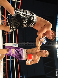 試合:王者・三垣が素早いジャブを連打で放ち、ワンツー・左フックとコンビネーションをヒットさせペースを奪いに出る。しかし2R、金井が三垣の打ち終わりにストレートをカウンター気味にヒットさせダウンを奪う。金井はワンツー・左フックで一気に出るも、三垣もワンツー連打・左フックを返し逆に金井を下げる。3R、打撃戦で三垣が左右ボディ連打から左フックで金井からダウンを奪い返す。4R終了時は38-36,38-36,38-35で三垣がリード。三垣は5Rに入ると、コンビネーションで金井の攻略に出る。ワンツー・左フック・右アッパーをまとめ金井を下がらせるが、金井も右ストレート・左フックを返す。そして6R、三垣が先手を取り、ワンツー連打・左右フックを打ち込むと金井は防戦一方になりレフェリーストップ。三垣がTKOで王座初防衛に成功した。