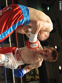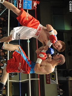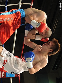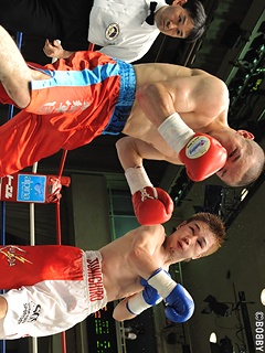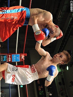 試合:序盤、勢いよく先に仕掛ける須江は、体を振りワンツー、ボディをテンポ良く繰り出し、2Rには左アッパーをヒットさせパンチをまとめる。対するランカー金田は、左右フックを返し打撃戦に。3R、ここまでディフェンスの良い須江だが、徐々に金田の前に出ながらのワンツーを浴び防戦一方になってしまう。3Rのポイントを落とした須江は4R、再び先に仕掛け手数でポイントを取り返す。中盤、互いに右を警戒していたが、7Rに金田がアッパーで仕掛ける。須江はワンツー、右アッパーを連打されながらもワンツーを返すが、ロープ際でワンツーを打ち込まれたところでレフェリーストップとなった。善戦の須江であったが、ランク奪取はならず。