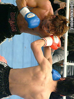 試合:序盤から激しく打ち合う両者。伊藤の左アッパーと東上の左フック・右ストレートがヒット。東上は伊藤の左アッパーをもらい、顎が上がる場面が目立つが、左フックを返すなど伊藤の動きを止め連打で反撃。終盤、互いに引かない打撃戦を展開。最終8R、共に打ち合い、クリーンヒットを奪うも最後までダウンは奪えず判定に。伊藤が左アッパーを的確にヒットさせ、僅かにポイントを奪い判定2-0で打撃戦を制した。