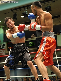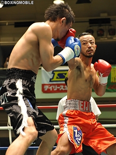 試合:1R、プレスをかける5勝5KOの伊藤からサウスポー堤がワンツーで早くもダウンを奪う。立ち上がる伊藤だが動揺の色は隠せず、前に詰めた堤のワンツーで再びダウン。堤は4戦4勝3KOで決勝進出。