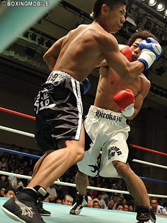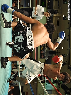 試合:迫力のパンチで、1Rから場内を沸かす両者。藤中が左フックで、輪島をダウン寸前まで追い込むが、輪島はクリンチで逃れたところを右フックで藤中の腰を落とす。1R、藤中の有効打により輪島は右耳をカット。2R、詰め寄る藤中をクリンチからの右フックで、輪島がダウンを奪う。4R、輪島の左フックに藤中の足が大きくよろめくが、ダウンは奪えずゴング。三十路の試合巧者、輪島が決勝に進んだ。