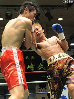試合:品部は上体を振ってプレス。兼丸は品部のプレスに左ボディ・右クロスで距離を保つ。中盤4R、プレスに兼丸が下がると品部は左右ボディ・左フックをヒット。ここで兼丸が右クロスを打ち返すと品部は左目上をカットするビハインド。中盤、品部はワンツー・左フックで反撃に。しかし、兼丸も下がることなく左ボディから右ストレートをヒットさせ打撃戦。6R、品部の左目上の傷が更に悪化。ドクターが続行不能と判断し、兼丸がTKO勝利を奪い取った。