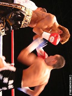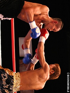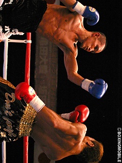 試合:両者ジャブを打ち合うも青木のジャブが的確に橋本を捕らえる。ジャブでリズムと間合いを掴んだ青木は、左ボディ・左フックとヒットさせポイントを奪う。橋本も左ボディ・右ストレートを返すが単発に終わる。中盤、橋本は青木のジャブで左目が塞がる苦しい展開。青木はジャブで距離を保つと左右ボディに攻撃の的を絞り出す。終始、青木がジャブから左右ボディ・左フックを橋本に打ち込み判定で勝利を奪った。