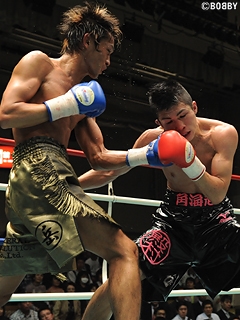 試合:殿村は今年5月の東洋タイトル敗戦からの復帰戦。対する将生は、約7年のブランクを乗り越え09年にカムバックし、ランキング奪取を目論む。サウスポーの両者、まずは31歳の将生がキレのある動きを見せ、速いジャブで先手を取ると殿村にボディアッパーをヒット。殿村もジャブをダッキングでかわしボディストレートと、互いにボディを狙う立ち上がり。有効打こそ打たせない殿村だったが3R、将生のコンパクトな右アッパーで一瞬よろめくと、続けて右フック、アッパーを被弾。この試合、将生のアッパーは冴え、ジャブからのアッパーが殿村のボディと顎を捉える。しかし、河野戦で打たれ強さを実証した殿村は、少々の被弾は御構いなし。プレスをかけてワンツー、ボディで応戦。これを将生は手数で押さえ込む。中盤、キレの落ちない将生は、ジャブからボディアッパー、さらに会心の右フックを入れるが、殿村はここでも前進。7Rには手数が落ちた将生にボディ連打で攻め込む。将生もここで負けず、アッパーを返し「来い!」とポーズ。すると殿村も同じポーズを返し激しく打ち合う。最終8R、将生の左ストレート、アッパーがクリーンヒットするが、殿村は前に出てワンツー。そこへ将生の右フックが入り、殿村は後ろに手を付きダウン。立ち上がる殿村のダメージを深刻と見たレフェリーが試合を止めた。