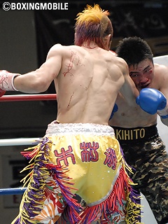 試合:サウスポー同士の一戦は、1Rから木村が積極的に仕掛ける。左ストレートを木村が先にクリーンヒットさせ、ここで早くも主導権を引き寄せる。2R、木村の左ストレート・右フックがクリーンヒットし、早くも西尾の顔面が赤くなる。西尾は2Rに偶然のバッティングで右目上をカット。3R、西尾もリーチを生かし右ジャブから左ストレートを狙うが、木村が左ストレートをボディに打ち分け、西尾の距離を殺してしまう。ラウンド終盤には木村が西尾をコーナーに詰め、左ストレート・右ボディ・右フックをクリーさせ追い込むも、ここはゴングに救われる。木村の連打を浴び、西尾のダメージは大きい。4R、木村がワンツーを連打で打ち込むと西尾は防戦一方の展開に。ここでレフェリーが危険と判断し、試合ストップ。木村が世界戦の敗戦を引きずる事無く、磐石の試合運びを見せ、4R2分54秒TKOで西尾を下し、13度目の防衛に成功。チャンピオンカーニバルで小野寺洋介山(オサム)の挑戦を受け、記録更新に臨む。