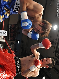 試合:新藤は肘の故障から1年振りに復帰。右ジャブで距離を測るサウスポー新藤に対し、中村は右ボディストレートで崩しに掛かる。しかし、新藤は的確にジャブをヒットさせ、詰める中村に左クロスを打ち込む。2R、強引に出る中村に、新藤は左ストレートをカウンターでヒットさせダウンを奪う。このダウンで距離とリズムを掴んだ新藤は、ジャブで中村の前進を阻み、ロングレンジからの左ストレート・右フックでダメージを蓄積させる。5R、新藤の左ストレートに下がる中村。ここで中村をロープに詰め、ワンツー・右フック・左ストレートと連打を浴びせレフェリーストップを呼び込み、復帰戦をTKOで飾った。