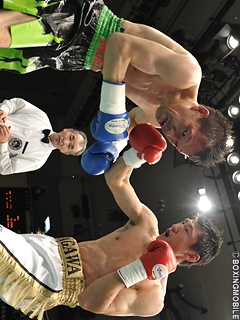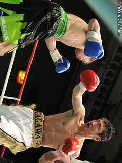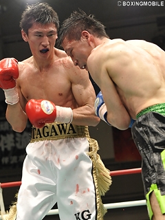 試合:リーチを活かし、田川がジャブ・右ストレートで距離を取ろうとするが、森田はプレスを掛け左右ボディで接近戦に持ち込む。中盤、強引に前に出て左右ボディ・左フックで田川を押し込む森田。ここで田川はコンパクトな右アッパー・左フックで森田のプレスを阻み、ワンツーに繋ぐ。森田は執拗にプレスを掛けるも左右ボディから次の攻撃に移れず、田川の右アッパー・左フックからのバックステップに距離を取られ、右ストレートを被弾しポイントを奪われた。