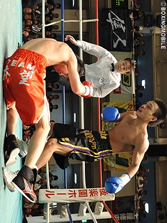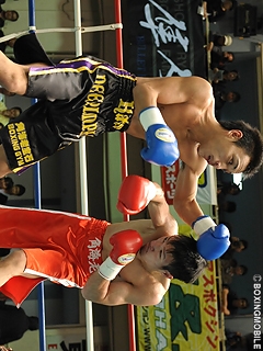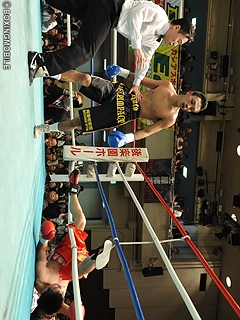試合:ジャブの探り合いで試合はスタート。すかさず大橋が右ストレートで距離を詰めるも、コーチはジャブで出足を止める。コーチは強引に詰める大橋に左フック・右ストレートをヒットさせダウンを先制。カウント8で再開されると、今度は大橋が右ストレートでコーチの膝を落とす。打ち合いとなるも、コーチの右ストレートが再び大橋を打ち抜き、2度目のダウンを奪った。同門対決を制したコーチは、敢闘賞を獲得した。