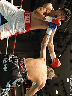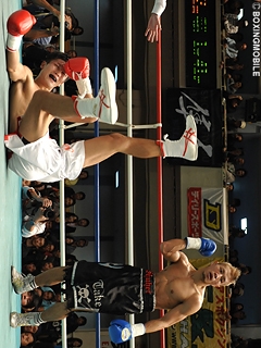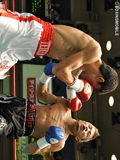 試合:ジャブ・右クロスで積極的に攻め込む土屋。これに対し、リーチで上回る中澤がコンパクトな右ストレートで応戦。2R、土屋がジャブで距離を詰め、左フック・右アッパーを打ち込むと崩れ落ちる中澤。カウント途中で中澤陣営からタオルが投げ込まれた。土屋はデビューから無傷の7戦7勝7KO。今大会MVPを獲得した。