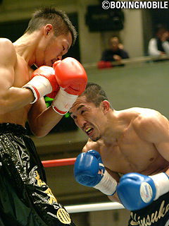 試合:サウスポー上石に対し齋藤は足を使い右を再三ヒット、返しの左フックも当て優勢に進める。上石も単発の左を当てるがヒット数は断然斉藤。顔面を腫らす上石が懸命に前に出るが、齋藤は上石の左のあとに右をかぶせ、サイドステップなど技術ある攻めも披露。6Rにはタイミングのいい右で上石の動きが止まる場面も。ラストR、斎藤は故意バツで減点1となるものの文句なしの判定で2位・上石に快勝。ランクアップを確実とした。