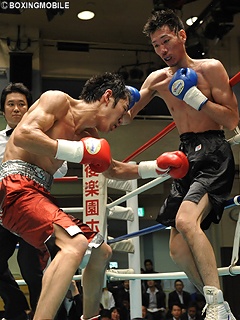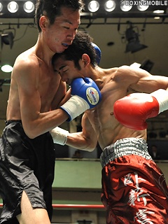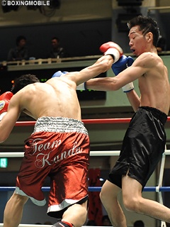 試合:頭一つ分大きい長島は、ジャブを放ちながらサークリングし、自身の距離を保つ。接近戦に引き込みたい國島だが、右アッパー・右ストレートでプレスを掛けられない。長島はジャブからのサークリングにバックステップを混ぜ、左フック・右ストレートでポイントを奪う。最後まで長島が距離を保ち続け、試合をコントロールした。