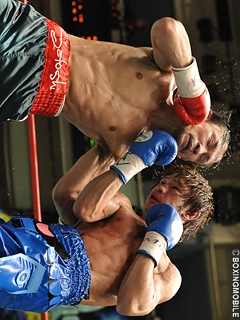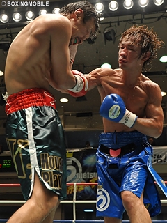 試合:上体を振って低く詰める梅津に対し、細野は左ボディ・左フックで迎え打ち、早くも打撃戦の展開に。細野の左ボディ・左フックが梅津を捉えれば、梅津も右フック・左右ボディを返す。両者一歩も引かない打ち合いに序盤から会場は「細野」「梅津」の大コールに包まれる。しかし中盤に差し掛かり、細野が的確なパンチで梅津を上回る。細野の代名詞である左ボディを軸に、左フック・右ストレートを打ち込みポイントを奪う。終盤、梅津も手数で反撃に出る。プレスを掛け、右フック・左右ボディ・右アッパーで接近戦を仕掛けると、細野も下がることなく左ボディ・右ストレートを返し意地の張り合い。最終10R、細野がジャブ・ワンツーで前に出れば、梅津も右クロス・左フックを返す。両者は最後の最後まで打撃戦を繰り広げたが、攻撃の的確性で上回った細野が最大8ポイント差をつけ、日本フェザー級新王者に輝いた。