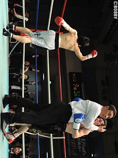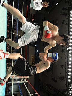 試合:足を使いサイドに動く伊藤が、右ストレート・左フックをヒットさせ先手を奪う。深山は距離を詰めたいが、伊藤の足を追い切れない。2R、伊藤がジャブから左フックをクリーンヒット。この左ボディで深山が下がると、伊藤はここを逃さず、右ストレート・左ボディ・右クロスと連打を打ち込み深山の膝を落とし、レフェリーストップ。