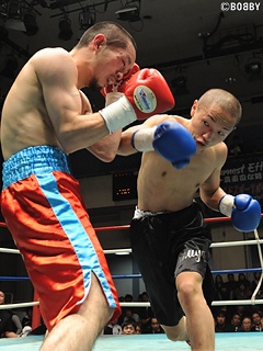 試合:詰める須江にランカー三田村がジャブ・左フックを打ち込む。プレスを掛け接近戦に持ち込みたい須江だが、三田村は距離を保ち左を上下に打ち分け、右ストレートで主導権を掴む。すると3Rには、カウンターの右クロスをヒットさせ須江からダウンを奪う。中盤、ポイントを挽回しようと前に出る須江だが、三田村に的確な右クロス・ワンツーを打ち込まれる。須江は左ボディ・右ストレートと最後まで手数で反撃を試みるも、三田村はサイドに動き、距離を保って左フック・右ストレートをヒット。三田村が最大で9ポイント差をつけ須江を下した。