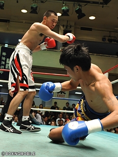 試合:千葉が1Rから一方的な展開に。左ボディストレートでタイ人の膝を揺らすと、一気に右フック・ワンツー・左ストレートで立て続けに3度のダウンを奪う。千葉が汗をかくことなく勝負をつけた。