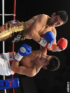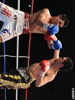 試合:序盤、左右フックを振って攻め込む井上は、単発がヒットするも自身で距離を潰してしまいクリンチに。加藤も詰められる前に右ストレート・左アッパーを狙うが、井上のクリンチにヒットを奪えない。4R終了時はジャッジ0-3で挑戦者がリード。5R、ポイントを先行された王者は不用意に前へ出てしまい、井上の左フックで痛恨のダウン。しかしスタミナに不安があるのか、この場面でも井上は攻め切ることが出来ず、中盤も自らクリンチに入ってしまう。8R終了時も井上が0-3でリード。終盤、クリンチの多い井上は度々注意を受け、10Rにホールドで減点1。加藤は最後まで左右フック・右アッパーを細かく打ち込み挽回を計るが、決定打を奪えず判定に。井上がダウンポイントを守り抜き、日本・東洋ウェルター級の新王者となった。