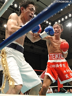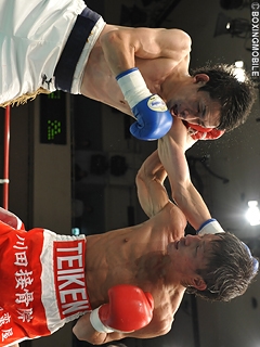 試合:サウスポー鈴木がジャブ・左ストレートをヒットさせ先手を奪う。ここで一気に樋口をロープに詰め、右ボディ・左ストレートをコンパクトに打ち込み主導権を握る。中盤、樋口もガードを固め右ストレートで接近戦に持ち込むが、鈴木は上体を振って右フック・左アッパーをヒット。鈴木がロングレンジではワンツー連打・右ボディを、接近戦では右フック・左アッパーをヒット。鈴木が最後まで試合を支配した。