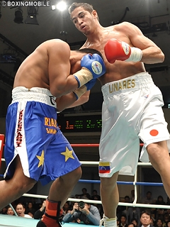 試合:スタートと同時に、カルロスが素早いステップインからワンツーをシマモラにクリーンヒット。ここから試合はカルロスの一方的な展開に。左右ボディ・右ストレートでシマモラのガードを固めさせる。シマモラも右ロングフックで反撃に出るが、カルロスはバックステップでディフェンス。カルロスは的確に左ボディを打ち込み、右ストレートでシマモラを圧倒し、1RKO勝利を演出。