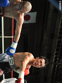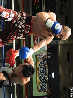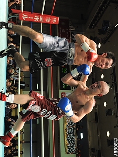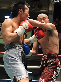 試合:1R、硬さの見える久田に、前東洋王者の家住はストレートに近い左ジャブで先制。さらに高速ジャブからワンツーで追い込む。対する久田も何発かもらい硬さが取れたのか、プレスから強打の左右フックで反撃開始。緊迫感のある立ち上がりを見せるが、ベテランの両者だけに、2R以降は互いの距離を潰し合う展開。久田は飛び込んでの右クロスから左右フックの連打を仕掛けるが、家住もジャブからコンパクトなワンツーでパンチをまとめさせない。さらに家住も離れては右のカウンターを狙うが、今度は久田が間合いを潰し、互いに決定打を奪うことが出来ない。このまま試合は進み、家住が辛勝。家住は来年のチャンピオンカーニバル出場が決定している。