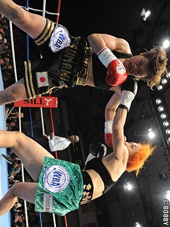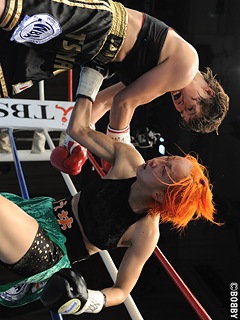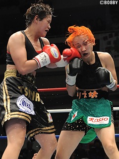 試合:藤本が積極的にジャブ・ワンツーで攻め込むが、ツナミは挑戦者の打ち終わりに左アッパー・右クロスをクリーンヒットさせ、早くもペースを握る。さらに立て続けに右ストレート・左フックをヒットさせ挑戦者の膝を落とす。4R、ツナミが左ボディで崩しに掛かる。ボディ・フック・アッパーと左を上手く使い分け、下がる藤本に右クロスでポイントアウト。藤本も距離を活かしジャブ・ワンツーで勝機を開きたいが、ツナミはスウェー・ヘッドスリップで連打を許さない。ペースを握り続ける王者は、的確に右ストレート・左右アッパー・左ボディをリズム良く打ち込むと8R終了時、ダメージが深刻と見た藤本陣営がレフェリーに棄権を申し出た。ツナミが圧巻のTKOで3度目の王座防衛に成功した。