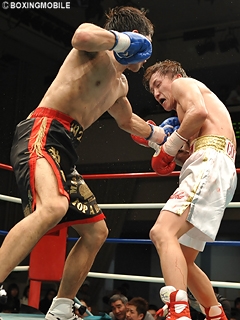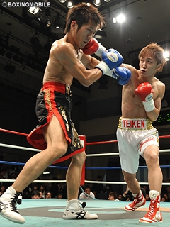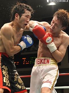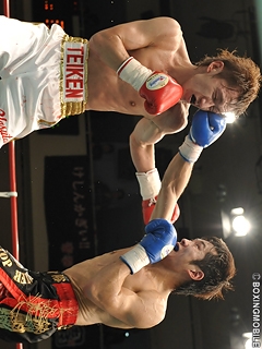試合:石本がジワジワとプレスを掛け川口を下がらせるが、川口も下がりながら左を上下に打ち分ける。リーチで上回る石本は、右ストレートでプレスを掛け、ワンツー・左フックとコンパクトな連打。3Rにはヒッティングで川口の右目上をカットさせる。中盤、石本がさらに前に出てワンツーフックで仕掛ける。ここで川口も下がることなく左ボディ・左フックで応戦するが、体格で勝る石本が徐々にワンツー・左ボディでロープに詰める。石本がプレスからの手数・ヒットで上回り川口を退けた。