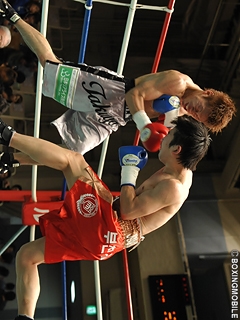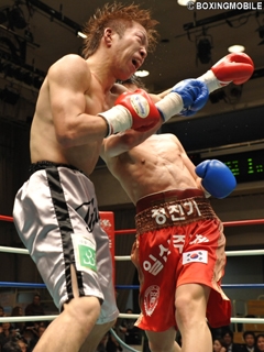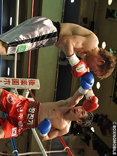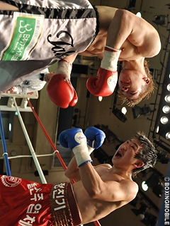 試合:鄭がスタートダッシュでジャブ・右ストレートで距離を詰める。これに宮森は足を使い左右に動き、ジャブで距離を取り右ストレート・右アッパーをヒット。それでも鄭は宮森の右アッパーに怯むことなく強気のプレス。しかし、鄭は頭から入る場面が多く、5Rにバッティングで減点1。足を使う宮森に対し、鄭は走る様に追い掛けワンツーをヒットさせるが単発。距離を保つ宮森は左フック・右ストレートと手数で上回るが終盤、ポイント差が気になるのか、宮森も打ち合いに出る。鄭の右ストレートと宮森の左フックが交差する打撃戦となったが、やはり宮森が手数とヒットで上回り、僅差判定ながらも東洋ランカーを下す金星を上げた。