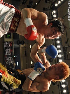 試合:両者積極的に仕掛け、互いにワンツー・左フックをヒットさせ、1Rから激しい打ち合いを展開。3R、打撃戦の中、宜志冨は右目上を2箇所カット。上部を偶バツで、下部をヒッティングで負傷する。終盤、負傷のビハインドを負う宜志冨が、距離を詰め勝負に出る。前田もここは下がらず応戦。ワンツー・左フックと、前田がクリーンヒット・手数で上回りポイントアウト。