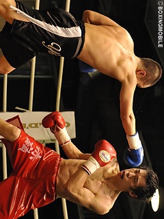 試合:サウスポー赤嶺が左ストレートでレフェリーストップを呼び込み5勝目。