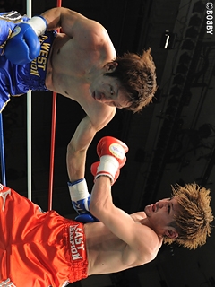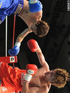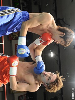 試合:序盤から前に出る両者。サウスポー堀がワンツーで打って出れば、角谷も右ストレート・左フックで応戦。堀の左ストレートと角谷の右ストレートがヒットするも、これは単発。中盤から堀のコンパクトな左ストレートがヒットするが、角谷はワイルドな右ストレート・左フックを打ち込む。角谷が手数・クリーンヒットで僅かに上回った。