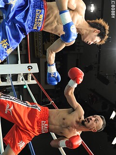 試合:サウスポー堤が、低い構えから左ストレートをヒットさせ前半のポイントを奪う。対する柘植は中々リズムを作れずにいたが、次第にタイミングが合い手数も増える。終盤は打ち合いとなり、有効打で柘植が上回った。
