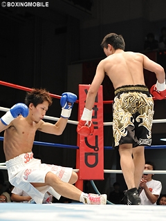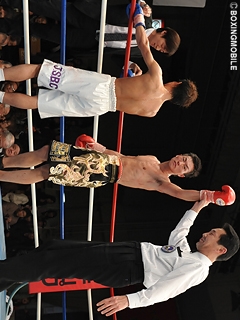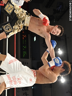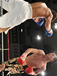 試合:1R、上体を振って距離を測るサウスポー笛木。対し竹中はジャブで仕掛け、笛木のダッキングに合わせ右ストレートを打ち込み、早くもダウンを奪う。笛木はこれで左目上をカットするビハインド。ペースを引き寄せた竹中は、リズム良くワンツー・左フックでポイントを奪う。笛木も左ストレートで反撃を試みるが、竹中のリズムを崩せない。笛木はさらに竹中の右ストレート・右アッパーを打ち込まれ、4Rに左目上の傷が悪化。ドクターが続行不能と診断し、竹中がジム移籍後の初戦でTKO勝利を勝ち取った。