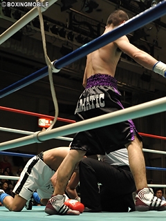 試合:立ち上がりから両者が仕掛ける。ブンブンが思い切り良く右フック・左ストレートを振り抜けば、佐藤もプレスから右ストレートを思い切りよく打ち込む。佐藤は右ストレートでペースを掴みかけるも2R、強引に詰めたところにカウンター気味の右フックを合わされダウン。先制のブンブンだが3R、今度は佐藤の右ストレートで大きく膝が落ち、ワンツーをヒットされダウンを奪い返されてしまう。立ち上がるもダメージが深く、ブンブンはクリンチが多くなりホールドで減点1。一気に主導権を引き寄せた佐藤は、左右ボディから右ストレートをヒットさせダメージを蓄積させる。ペースを奪いたいブンブンは、左アッパー・右フックを繰り出すが大振りに。そして6R、佐藤の左右ボディに膝が揺れるブンブンは、左フックを打ち込まれ崩れるようにダウン。佐藤がレフェリーストップを呼び込み完勝。ブンブンは2連敗となった。