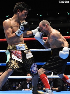 試合:大毅がガードを高くし前に出るとオルティアーヌはジャブ・左フックでサイドに動き、体格で上回る大毅の左ボディのプレスにオルティアーヌも思い切り良く左フックを振り抜き応戦。中盤、更に圧力を強める王者だが、挑戦者は左フック・右クロスと手数・スピードで対抗し詰めさせず。8R、大毅は強引に前へ出ると左ボディをヒットさせ、オルティアーヌを下がらせ右クロスにつなぐ。オルティエーヌも左ボディ・右クロスを返すが、直後の左フック相打ちは大毅が打ち勝つ。終盤、挑戦者も細かい左フック・左ボディと手数でポイントを奪いに出る。王者は挑戦者の手数に対し、終始前に出て単発ながら強打の左フック・右ストレートを打ち込む。ジャッジ1者オルティアーヌの手数を支持するも、残り2者は大毅の強打に軍配を上げ、大毅がV2防衛に成功した。