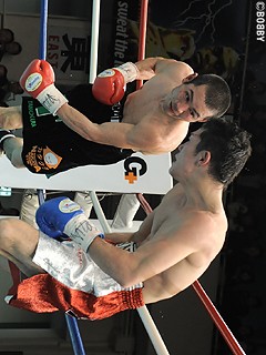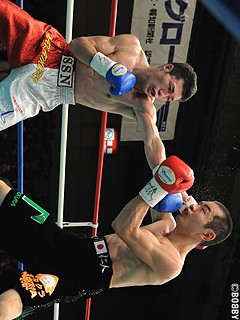 試合:立ち上がりから積極的に打って出る両者。互いにワンツー・ストレートを繰り出す主導権争い。ここで挑戦者は右ストレートを上下に打ち分け、2Rにはカウンターの右ストレートで王者からダウンを先制。3R、ダウンを奪った中森は右ストレート・左フックで攻め込むも、荒川は冷静に中森の動きを見極め、左ストレートでダウンポイントの挽回に入る。中盤、上体を小刻みに振って距離を詰める挑戦者に、王者はコンパクトな左ストレート・右フックをヒットさせ試合を組み立てる。中森は自身の距離で戦えない焦りか、6R終了のゴング後、荒川にパンチを打ち込み減点1。ジワジワとプレス強める荒川は7R終了間際、左ストレートで中森をコーナーに詰め、ワンツーフックと連打。完全に試合の主導権を掌握した王者は8R、挑戦者に左ストレートを立て続けに打ち込む。ここで中森のダメージが深いと判断したレフェリーは、やや唐突ながら試合をストップ。荒川が2Rのダウンを跳ね返し、レフェリーストップで2度目の王座防衛に成功した。★★