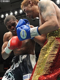 試合:スタートと同時に仕掛ける両者。チャーリーが左右ボディ・ワンツー連打を打ち込めば、丸元もワンツーフックを返し早くも打撃戦に。ここで王者はリーチを活かし、ロングレンジでは右ストレート・左ボディをヒット。挑戦者の反撃にはガードをガッチリ固め、筋肉の鎧でワンツー・左ボディをブロック。4R終了時のジャッジは有効打・手数でチャーリーが上回り、判定3-0でリード。丸元は4R、チャーリーの打撃で左目上をカットするビハインド。中盤5R、王者は更に圧力を強める。ワンツー・左ボディとリズム良く打ち込み挑戦者を防戦一方に。そして6R、ワンツーで丸元をロープへ釘付けにすると、左ボディ・右ストレートと連打を打ち込み、レフェリーストップを呼び込んだ。チャーリーが磐石の試合運びで丸元を下し、日本・東洋2冠の防衛を成し遂げた。★★