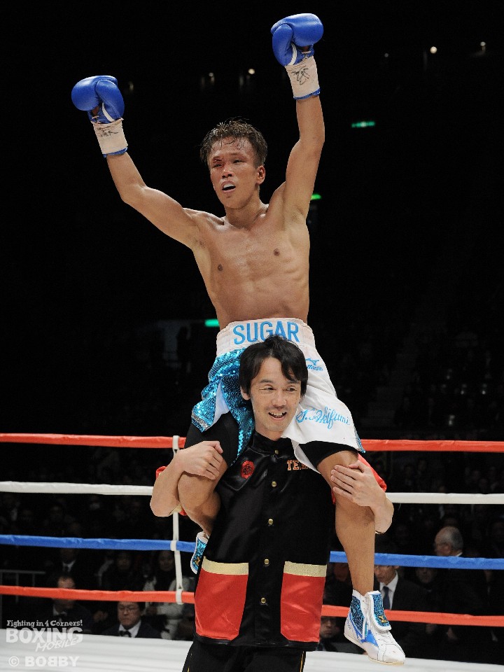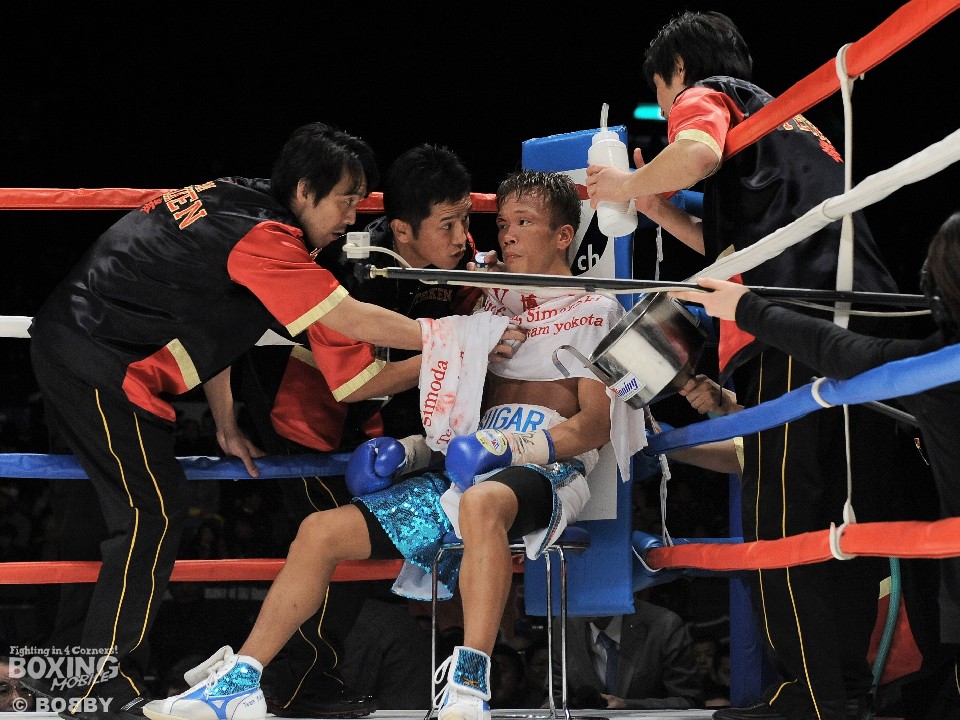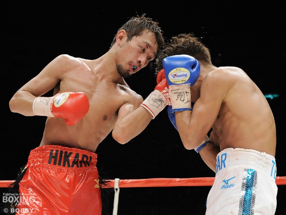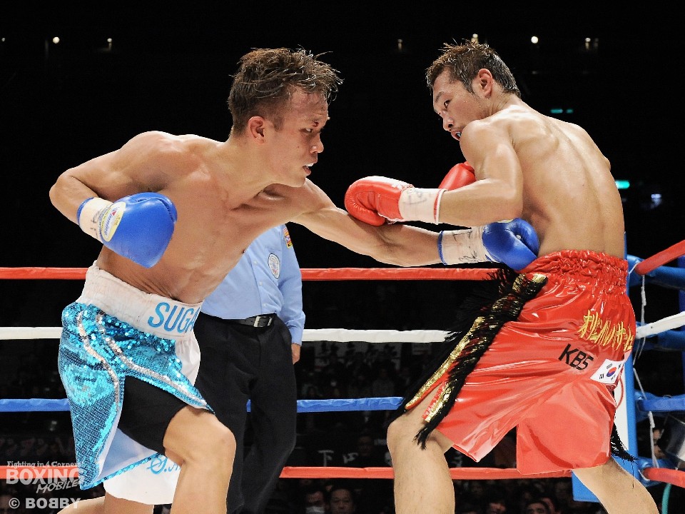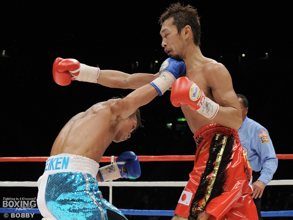 試合:開始から下田が上体を振り、ジワジワと李との距離を詰める。李も足を使い距離を保つが、互いに単発ながらストレートを打ち合い、ポジションの取り合い。しかし3R、サウスポー下田がジャブで距離を測ると、左ストレートが李のアゴを捕らえダウンを先制。立ち上がる王者に挑戦者が攻め込むが、ここでカウンター気味の右ストレートがヒット。終了間際に李がダウンを奪い返す。だが、中盤から積極的に左を上下に打ち分け攻め込む下田に、李は左右フックで迎え打つもやや大降りとなり上体が流れてしまう。5R、距離を支配した下田は、李のステップインに合わせ狙い済ましたカウンターの左ストレートを打ち抜き、2度目のダウンを奪う。立ちがる李は右ストレート・左フックの連打で反撃のチャンスを伺うが8R、下田が左ストレート・左ボディアッパーでコーナーに詰め、右フックをテンプルに打ち込むと、李はこの試合3度目のダウン。李も最後までポイントを奪い返そうと右ストレートで前に出るが、下田も集中力を切らさず左ストレート・右フックで迎撃。下田が最大で9ポイント差をつけ、李からベルトを奪い獲り、新王者に輝いた。★★★