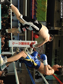試合:立ち上がりからランカー十二村が圧力を掛け、左フック・右ストレートをヒット。和田も下がらず右ストレートを返すが大振りとなってしまい、十二村のジャブ・右ストレートに顔面を弾かれる。序盤に距離を掴んだ十二村だったが、4Rに踏み込むと和田と頭が当たってしまい、左目上をカット。ここから接近戦の展開になると、和田も偶バツで左目上をカットし両者流血戦。6R、接近戦で打ち合う両者だが、ここで再び頭が当たり和田の傷が悪化。負傷判定となるも、序盤から右ストレートをヒットさせた十二村がポイントを奪った。