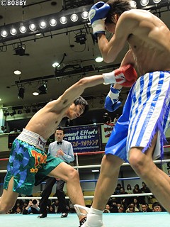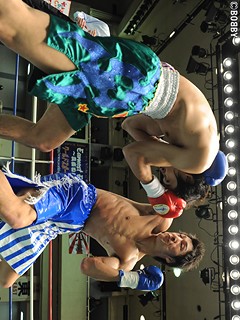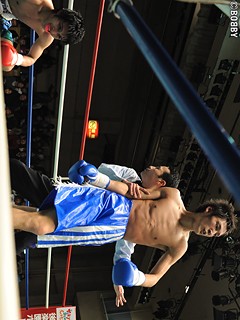 試合:サウスポー横山が左ストレートを上下に打ち分ける。ここでダオチャイは横山の左ボディストレートに、右ストレートを打ち降ろす。だが、横山はジャブ・左ストレートで前に出ると、3Rにワンツーでダウンを先制。このダウンで主導権を引き寄せた横山は4R、左ボディ・ワンツーで立て続けにダウンを奪う。立ち上がるダオチャイに横山は左ストレートを打ち込み、ダオチャイに背中を向けさせて、レフェリーストップを呼び込んだ。★