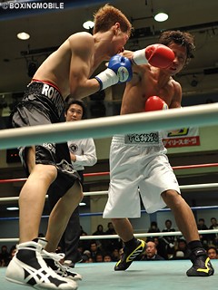 試合:詰める中川に、鈴木は足を使いジャブ・ワンツー。さらに狙った右のカウンターで2Rにダウンを奪う。3Rにもダウンを奪う鈴木だが、ダウン後も加撃し減点1。その後、仕留めに掛かる鈴木の攻撃が荒くなり、中川と激しい打ち合いに。ポイントを守った鈴木が4勝目を上げた。★