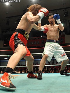 試合:アップライトに構える西永がジワジワとプレスを掛け、踏み込んでの左ストレートで先手を奪うが2R、蓑輪は左フックを踏み込む西永のテンプルにヒットさせダウンを奪う。終盤、西永が左ストレート・ワンツーで攻め込み、ポイントを挽回。しかし最終6R、スリップで膝を付いた蓑輪に西永がパンチを打ち込み、痛恨の減点1。この減点が勝負の分かれ目となり、ダウンポイントを守り抜いた蓑輪が勝利を引き寄せた。★