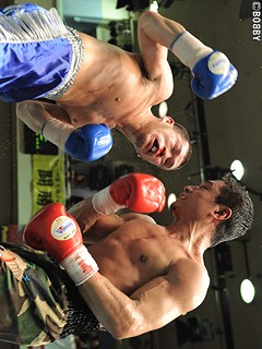 試合:開始と同時にランカー小池が仕掛ける。接近戦に持ち込み右クロス・左フックを打ち込めば、諏訪も左ボディ・右フックを返し、一気の打撃戦に。ここで左右ボディの打ち合いになるも、小池がコンパクトな右アッパー連打で諏訪のアゴを跳ね上げ、返しのワンツーを打ち込み序盤の主導権を奪う。諏訪は1R、小池のパンチで右目上をカットするビハインド。諏訪もジャブ・ワンツーで反撃を試みるが、小池にワンツー・右クロスを打ち込まれ、右目上の傷から激しい出血に見舞われる。5R、小池が力強いジャブをヒットさせ、諏訪の右目上の傷を更に悪化させると、ここを見逃さず追撃のジャブ・ストレートをヒット。堪らずレフェリーが試合を止め、諏訪の傷は続行不能と判断。ランカー小池がTKO勝利を力で奪い獲った。★