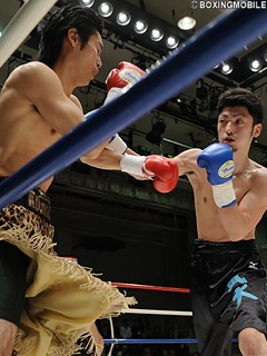 試合:ジャブ・右ストレートを放ち左右に動く原口に、篠原は上体を小刻みに振りガードを固め圧力をかけ、勢い良く踏み込んでワンツーを先制。2R、さらに圧力を強める篠原に対し、原口はサイドに動いて左フック・右ストレートで応戦。しかし、篠原が前に出ながら思い切り良く左フックを打ち込むと、原口はうずくまるようにダウン。一旦は立ち上がるも膝が揺れ、10カウントが数えられた。