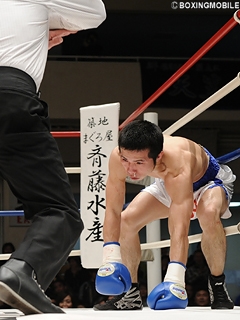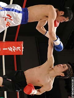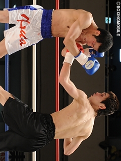 試合:日本フェザー級上位ランカー対決。4位・凉野が、上体を振って2位・天笠の懐に飛び込むチャンスを伺うと、天笠はロングレンジのジャブ・右ストレートをヒットさせ、早くも凉野の右目上をカットさせる。2R、強気の姿勢を崩さない凉野は、ジャブの引き手に合わせて天笠の懐に飛び込み、左ボディ・ワンツーを打ち込む。天笠は両手で強引に凉野を引き離し距離を作ると、ジャブからワンツーをヒット。さらに返しの左フックが凉野のアゴを打ち抜く。この一撃で凉野は後方に倒れるようにダウン。一旦は立ち上がるが大きく膝が揺れ、レフェリーが10カウント数えた。天笠が強打で凉野を粉砕し、フェザー級ランカー対決をKOで制した。★
