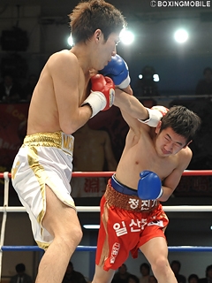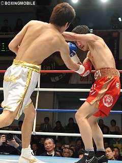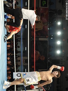 試合:国体2連覇の戸部のB級デビュー戦。対する鄭は、韓国スーパーフライ級王者の肩書きを持つ実力者だが、戸部の敵ではなかった。ゴングと同時に素早いジャブをヒットさせ戸部が一気に主導権を奪うと、左ボディ・右ストレートを打ち込む。鄭は何とか前に出て接近戦に持ち込みたいが、戸部の左ボディで早くもダウン。立ち上がる鄭のダメージは深く、戸部に左ボディ・ワンツー連打をまとめられ崩れ落ちた。戸部が韓国王者を寄せつけず、デビュー戦をTKO勝利で飾り東洋ランキングを手にした。★★
