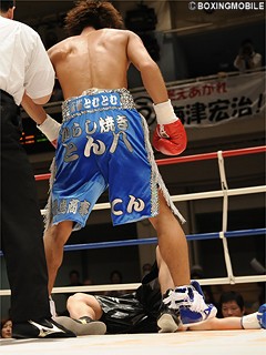 試合:中嶋の左フックが打ち抜く!立ち上がり、工藤が先手を奪うべくワンツーで仕掛けるも上体が流れ、中嶋のバックステップにパンチが届かない。2R、工藤のワンツーを冷静にブロックした中嶋は、打ち終わりに狙った左フックをアゴに直撃。大の字に倒れ込んだ工藤にレフェリーがノーカウントで試合を止めた。★