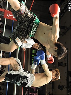 試合:初ランカー挑戦の大嶋。立ち合いはジャブを散らしていたが、時折身体をほぐす仕草を見せるなど体が固く、稲垣がボディから崩しにかかると左右フックを被弾。接近戦では互角の打ち合いを見せるも、距離を取ると踏み込みが浅い。一方、右の振りが大きい稲垣だが4R、フックで大嶋の右目上をカット。すぐにドクターチェックが入り、レフェリーストップとなった。