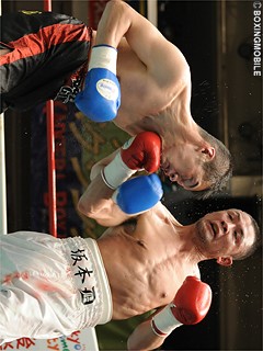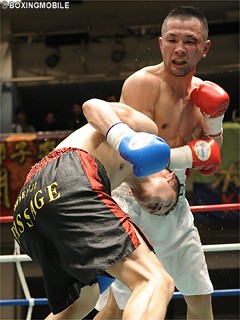 試合:手数と的確性で上回った尹。ワンツー・右ストレートの打ち合いでスタート。坂本はワンツー・左フックを繰り出すも大振りとなり、尹に距離をとられ左フック・右ストレートを打ち込まれる。中盤、右ストレート・右アッパーで坂本が反撃するも、尹は堅いガードで連打を許さず。尹がミドルレンジからワンツー・右ストレートを打ち込みポイントを奪った。
