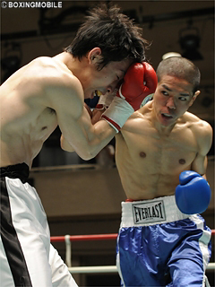 試合:接近戦の展開は、互いに左ボディ・右アッパーをコンパクトに打ち合う。一発の威力は新城だが、小旗が手数で上回り、新城を下げる。最終4R、小旗が左ボディ・右ストレートでレフェリーストップ。