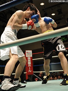 試合:初回から頭をつけてのフック、アッパーの打ち合い。元日本王者・三浦数馬の弟、フランキー三浦が、前に出て手数を出す長田に上下のアッパーを打ち込み判定勝利。